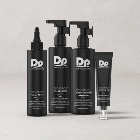 Exo-Grow is paired with Dermapen Worlds DP4 Microneedling, which is a professional, non-invasive hair restoration treatment using biomimetic exosomes to boost hair density and scalp health.